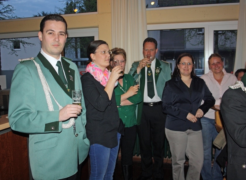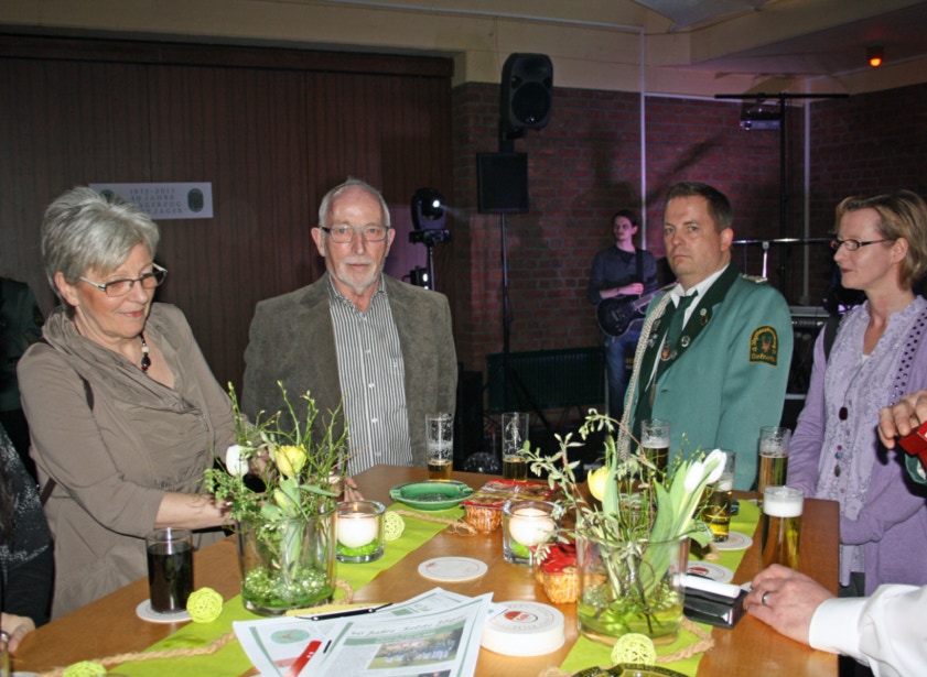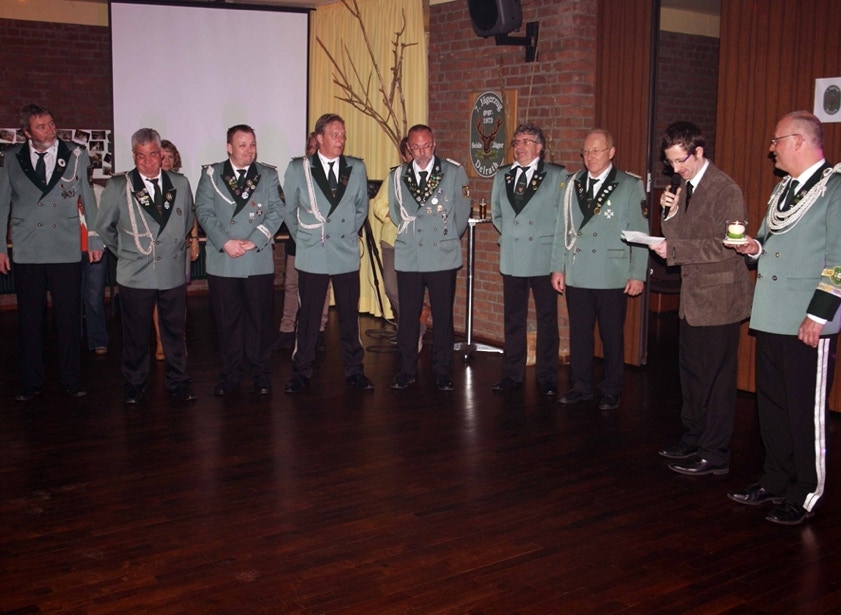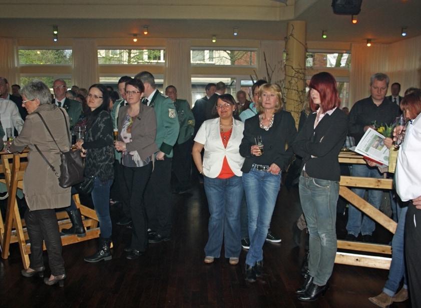 Am Samstag, den 19. April feierten wir im Johanneshaus Delrath den Auftakt in unser Jubiläumsjahr 2013. Neben allen Zugführern und ihren Vertretern des gesamten Regimentes haben wir weitere zahlreiche Gäste eingeladen. Unter Ihnen das amtierende Schützen- und Bezirkskönigspaar Daniel I. und Belma Engels, Jägerkönigspaar Thomas und Eveline Große Hellmann und das Kronprinzenpaar der Jägerkompanie Thomas und Kerstin Lüllwitz. Aus Stürzelberg besuchte uns Jägerkönig Gereon Roggendorf nebst Gattin. Der 1. VS des BSV, Wolfgang Behrend, führte die komplette Mannschaft des BSV-Vorstandes an. Auch die Stabsoffiziere unter Führung von Oberst Manfred Blank machten uns ihre Aufwartung. Ehemalige Zugkollegen haben ebenfalls den Weg zu uns gefunden, unter ihnen Manfred Ellrich, Heinz Weber und die Mitbegründer des Zuges, Hans-Jürgen Rieger, Wolfgang Erdmann und Dieter Deussen. Auch unsere Freunde von der Königsgarde Dormagen mit ihrem Zugführer Michael Elbel nebst Frauen ließen es sich nicht nehmen mit uns Party zu machen.
