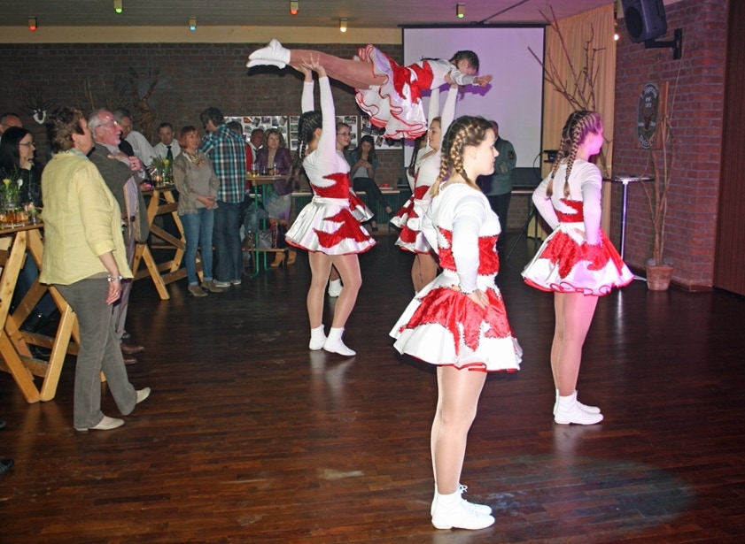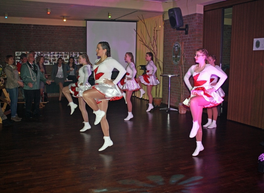 Oberleutnant Achim Wyrwich hieß zunächst alle Gäste recht herzlich Willkommen und bedankte sich für die zahlreichen Zuwendungen an diesem Abend. Er wies auf die Jubiläumszeitung hin die überall auslag sowie auf die Fotowand, auf der zahlreiche Bilder der vergangenen 40 Jahre ausgehangen waren. Gegen 21.00 Uhr trat die Tanzgruppe der IG Delrather Karneval für uns auf. Mit mehreren Tänzen sowie einem Solotanz begeisterten die Mädels uns und unsere Gäste. Dominik Engels in einer Parodie als Pfarrer Koltermann hatte danach die Lacher auf seiner Seite. Die Frauen unseres Zuges hatten eine besondere Überraschung für uns parat. Im nächsten Jahr geht es zunächst auf eine Radtour ins Emsland mit daran anschließendem Drachenbootfahren. Wir befürchten, dass 8 Männer rudern müssen und 8 Frauen den Takt schlagen! Lassen wir uns mal überraschen. Dann hieß es aber Party, Party, Party! Klaus von der Weiden und die Jungs von "Confetti" nahmen das Thema Rudern sofort auf und ließ den 7. Jägerzug schon einmal kräftig üben. Hier mussten unsere Frauen aber auch mit ran :-)