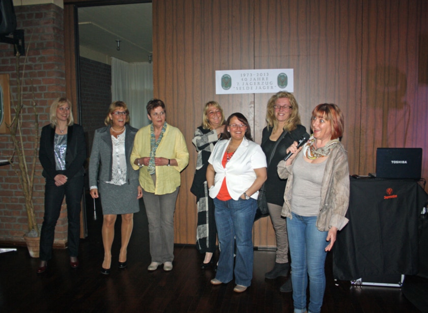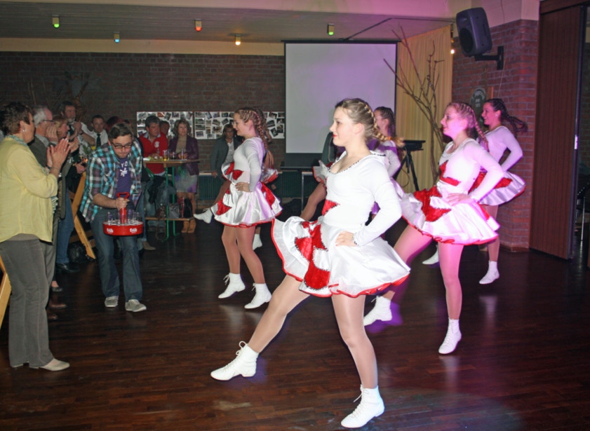 Oberleutnant Achim Wyrwich hieß zunächst alle Gäste recht herzlich Willkommen und bedankte sich für die zahlreichen Zuwendungen an diesem Abend. Er wies auf die Jubiläumszeitung hin die überall auslag sowie auf die Fotowand, auf der zahlreiche Bilder der vergangenen 40 Jahre ausgehangen waren. Gegen 21.00 Uhr trat die Tanzgruppe der IG Delrather Karneval für uns auf. Mit mehreren Tänzen sowie einem Solotanz begeisterten die Mädels uns und unsere Gäste. Dominik Engels in einer Parodie als Pfarrer Koltermann hatte danach die Lacher auf seiner Seite. Die Frauen unseres Zuges hatten eine besondere Überraschung für uns parat. Im nächsten Jahr geht es zunächst auf eine Radtour ins Emsland mit daran anschließendem Drachenbootfahren. Wir befürchten, dass 8 Männer rudern müssen und 8 Frauen den Takt schlagen! Lassen wir uns mal überraschen. Dann hieß es aber Party, Party, Party! Klaus von der Weiden und die Jungs von "Confetti" nahmen das Thema Rudern sofort auf und ließ den 7. Jägerzug schon einmal kräftig üben. Hier mussten unsere Frauen aber auch mit ran :-)