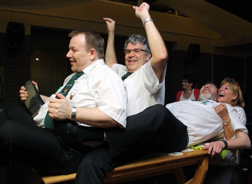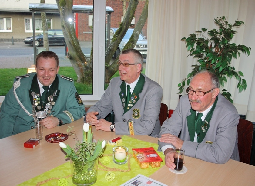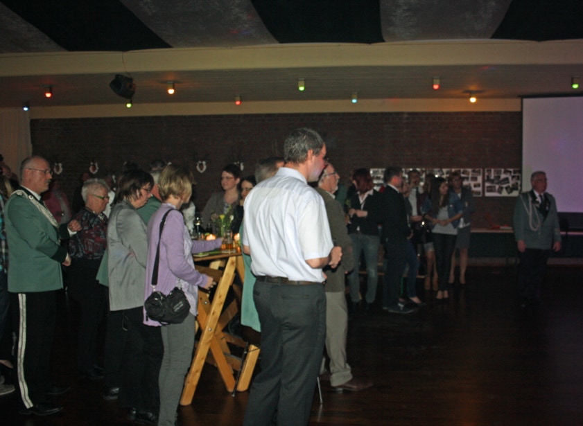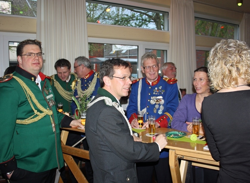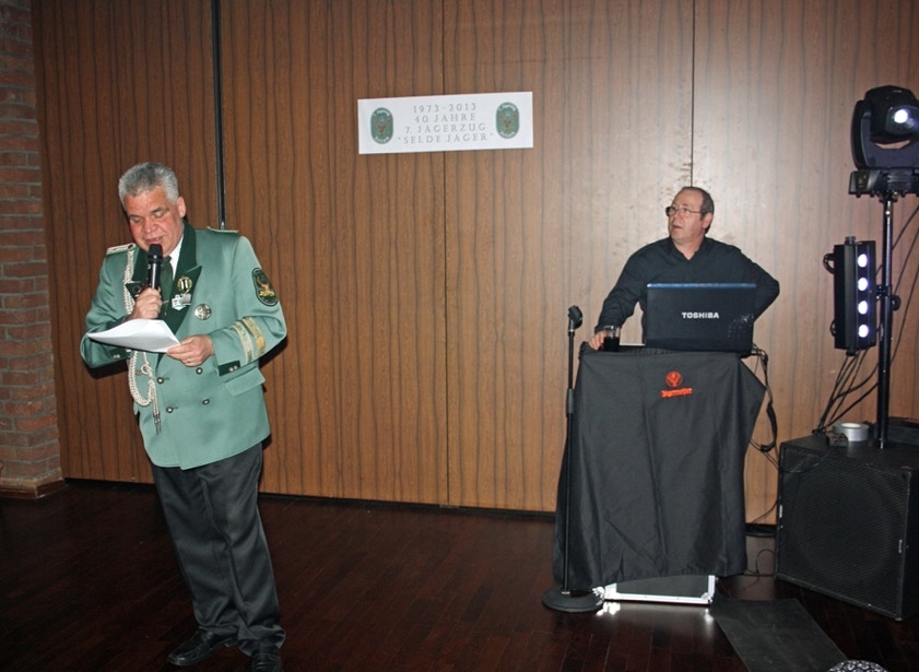 Am Samstag, den 19. April feierten wir im Johanneshaus Delrath den Auftakt in unser Jubiläumsjahr 2013. Neben allen Zugführern und ihren Vertretern des gesamten Regimentes haben wir weitere zahlreiche Gäste eingeladen. Unter Ihnen das amtierende Schützen- und Bezirkskönigspaar Daniel I. und Belma Engels, Jägerkönigspaar Thomas und Eveline Große Hellmann und das Kronprinzenpaar der Jägerkompanie Thomas und Kerstin Lüllwitz. Aus Stürzelberg besuchte uns Jägerkönig Gereon Roggendorf nebst Gattin. Der 1. VS des BSV, Wolfgang Behrend, führte die komplette Mannschaft des BSV-Vorstandes an. Auch die Stabsoffiziere unter Führung von Oberst Manfred Blank machten uns ihre Aufwartung. Ehemalige Zugkollegen haben ebenfalls den Weg zu uns gefunden, unter ihnen Manfred Ellrich, Heinz Weber und die Mitbegründer des Zuges, Hans-Jürgen Rieger, Wolfgang Erdmann und Dieter Deussen. Auch unsere Freunde von der Königsgarde Dormagen mit ihrem Zugführer Michael Elbel nebst Frauen ließen es sich nicht nehmen mit uns Party zu machen.